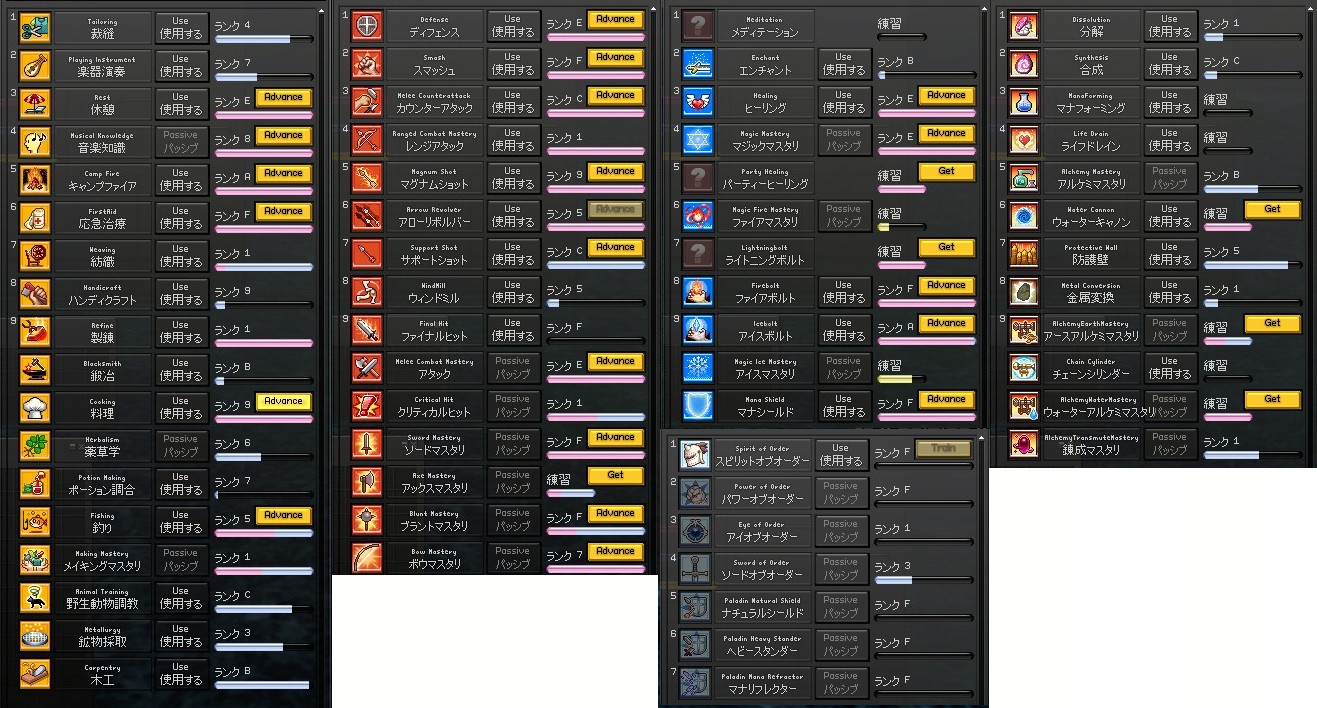 裁縫が伸び悩んでますが、調合・ハンクラ・鍛冶の辺りがちょっと進んだのかな。