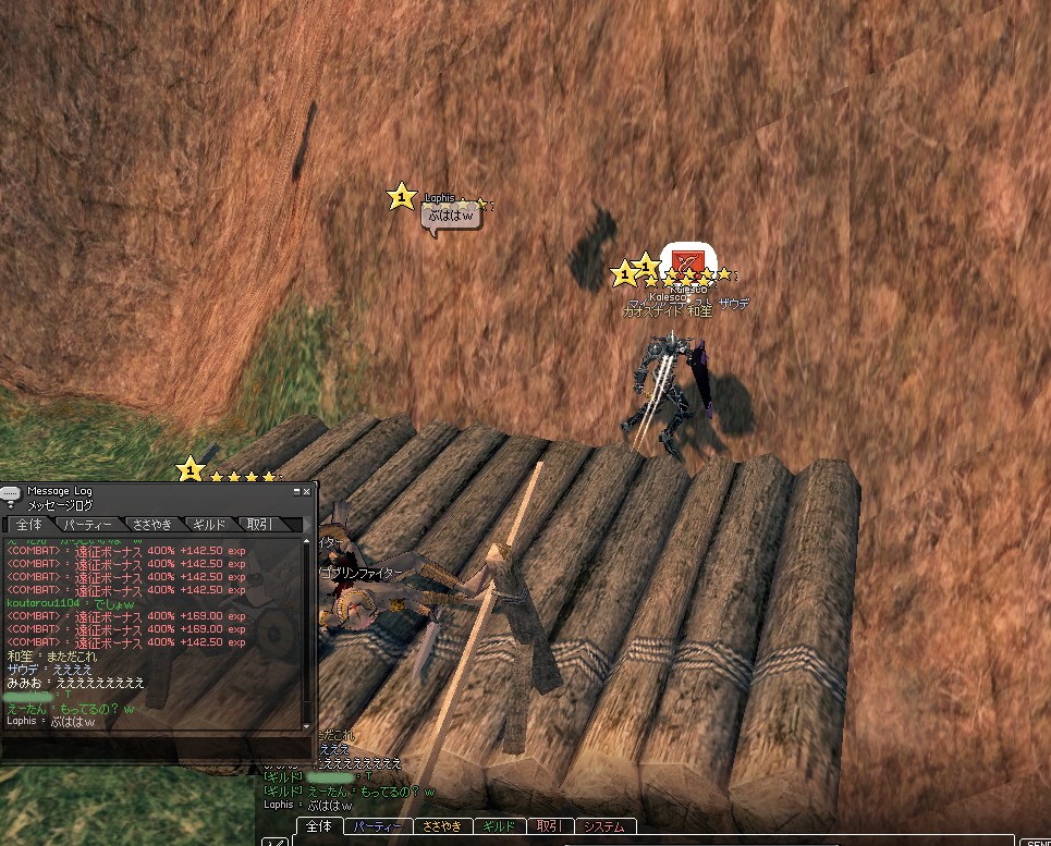 相も変わらず、ぽけっと突っ立ってるだけの寄生オンラインなイカダですが、アクシデント発生。