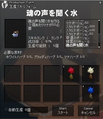 A~8よりはだいぶマシだけど、成功率が低い;; 丈夫な糸35%とか悲しくなる数字。